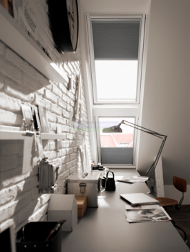 Verduisterend plisségordijn, handmatig. Een decoratieve oplossing voor verduistering en extra isolatie.